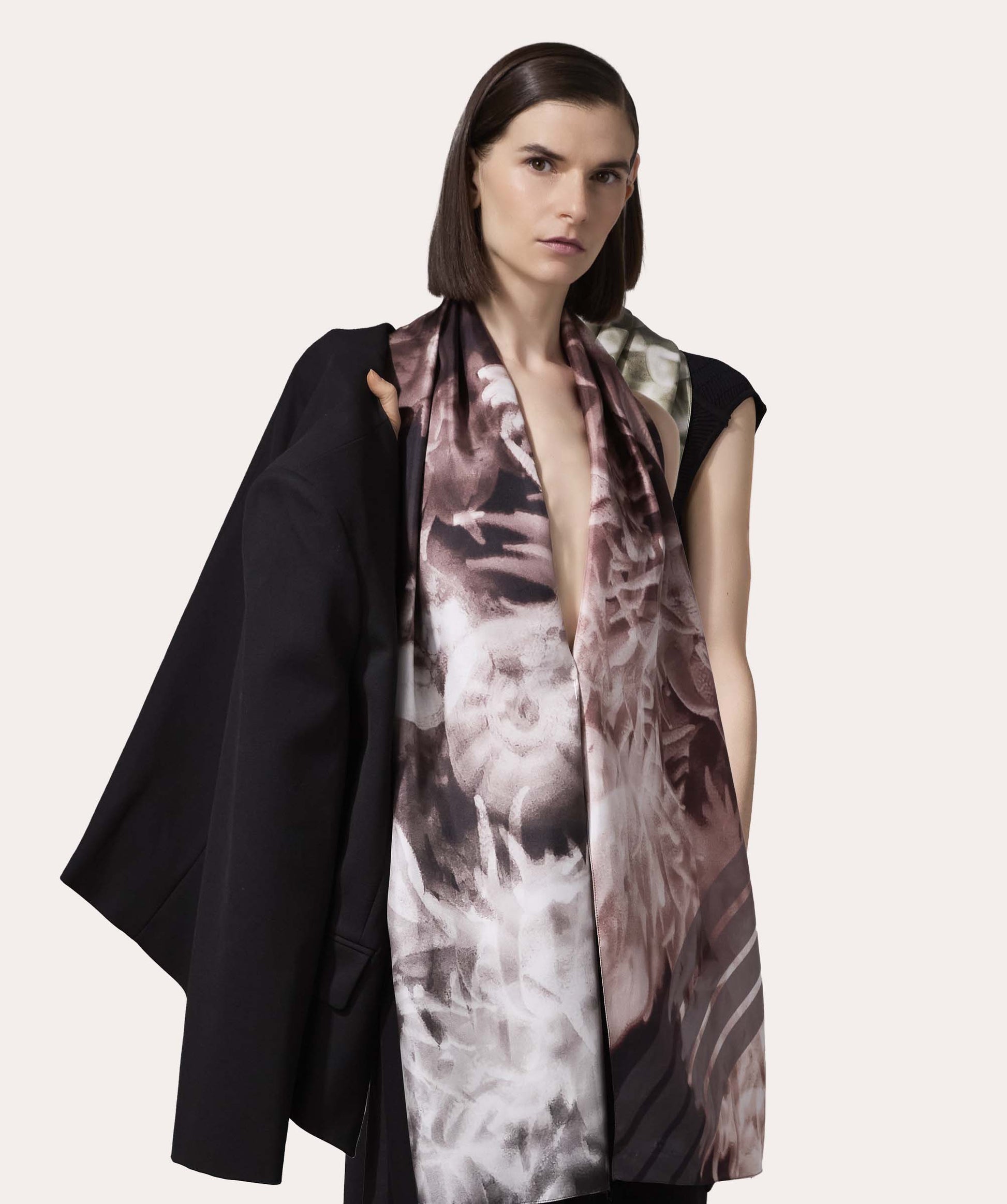 Ensure the longevity of your scarf, protect it from any liquids. Store your silk scarves in a cool, dry and dark space such as a protective box. To be cleaned by a specialized professional.